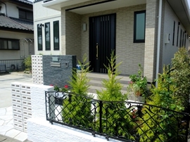 アルミ鋳物フェンスのデザイン性と植栽が道路面のエクステリアを引き立てます。
