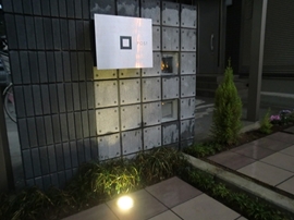 表札、ポスト、ブロックデザインのキーポイントに照明を設置してあります。